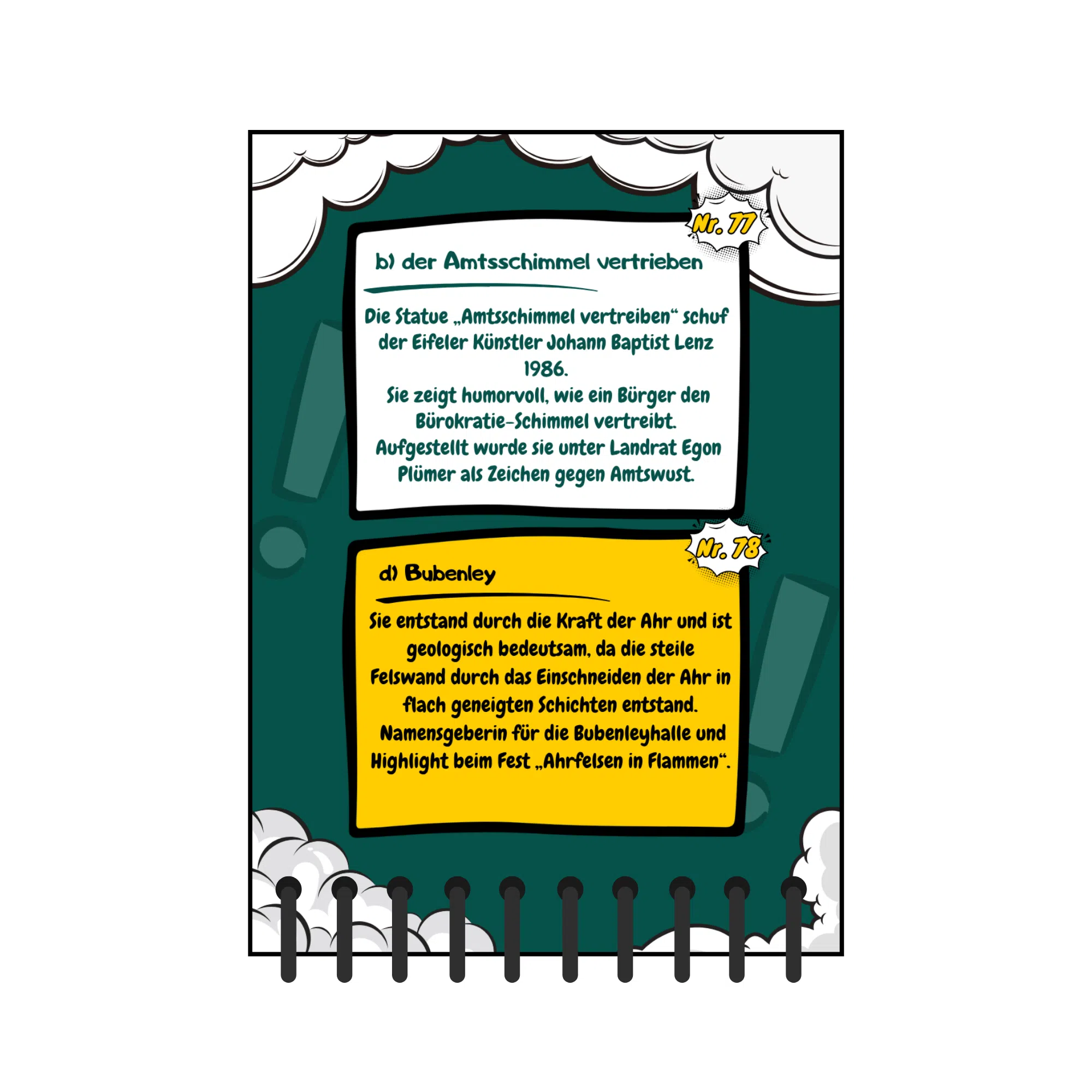Ein spannendes Quiz mit 92 Fragen über das Ahrtal – mit Themen aus Kulinarik, Geschichte, Kultur und Landschaft. Perfekt für alle, die die Region spielerisch entdecken wollen.