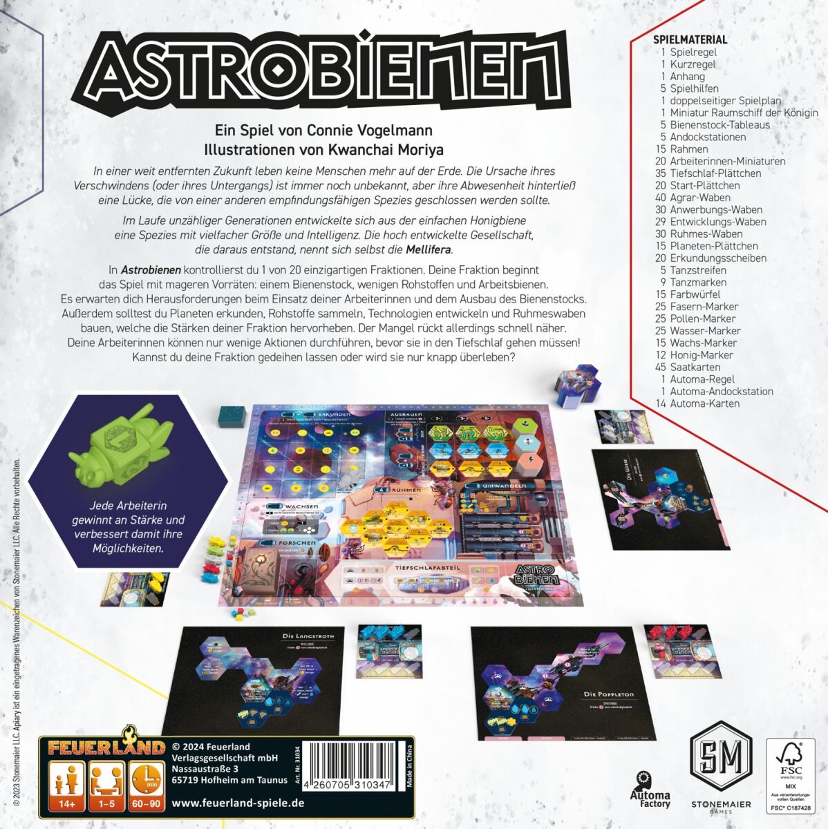 Apiary bietet Platz für 1-5 Spieler und dauert 60-90 Minuten. Das empfohlene Alter liegt bei 14+. Tauche ein in diese faszinierende Welt und erlebe ein Spiel, das dich sowohl herausfordert als auch begeistert. Bist du bereit, dich dem Abenteuer anzuschließen und dich von der Schönheit und Komplexität des Mellifera-Universums mitreißen zu lassen? Wage es, Apiary zu spielen und finde heraus, ob du es schaffen kannst, nicht nur zu überleben, sondern wahrhaftig zu florieren!