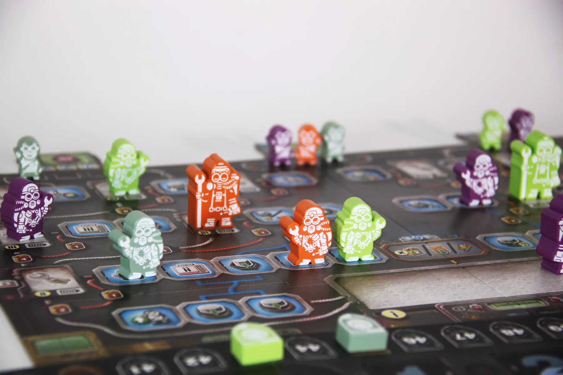 Jede Runde wird zur taktischen Herausforderung: Sammelt Nahrung, Energie und Biomasse, rekrutiert spezialisierte Teams und setzt sie gezielt in euren Operationszonen ein. Durch Missionskarten, technologische Entwicklungen und die geschickte Planung eures Tableaus erschafft ihr schrittweise eine effiziente Engine, die euch zum Sieg führen kann.