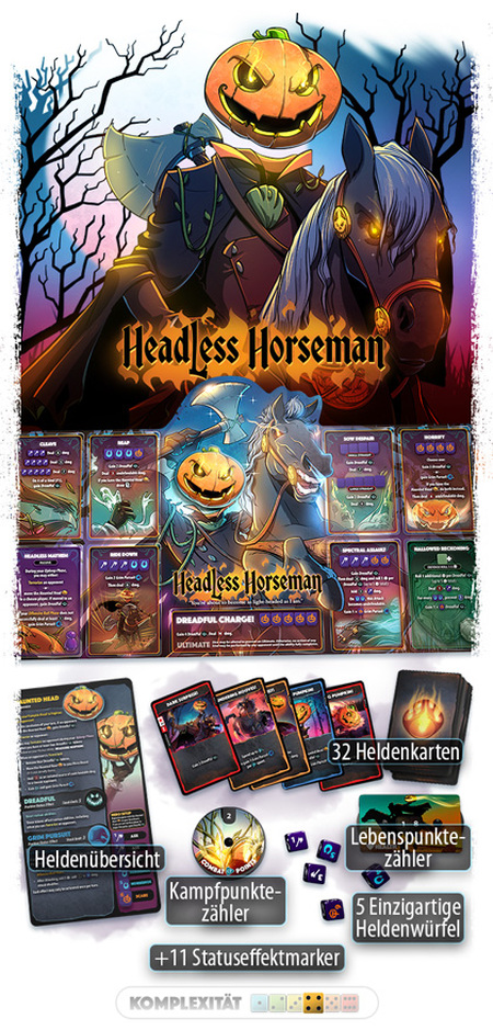 Der kopflose Reiter terrorisiert seine Gegner mit seinem schrecklichen Kürbiskopf! Stürze dich mit donnernden Hufen, geschwungenen Äxten und Hochgeschwindigkeitsaction in die Schlacht mit diesem klassischen Schlitzer!