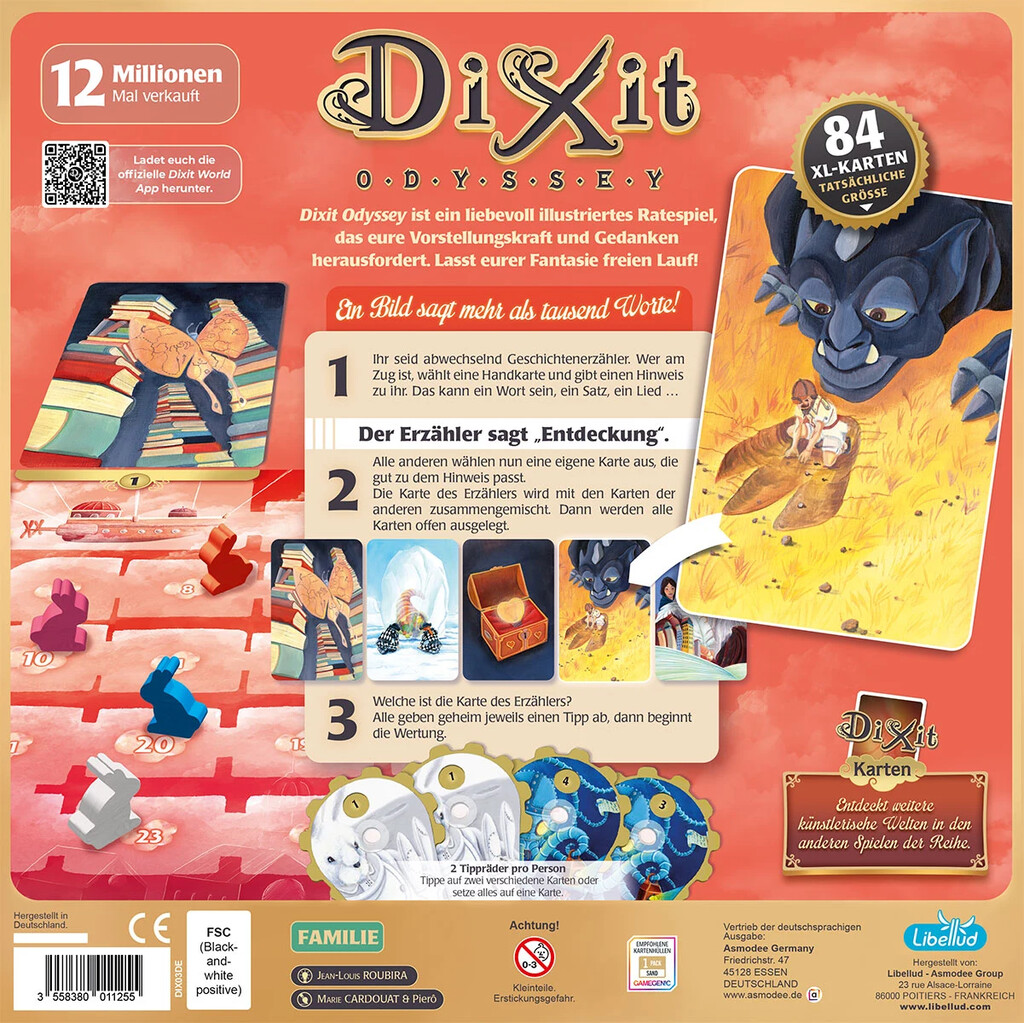 Das Familienspiel Dixit Odyssey ist ein liebevoll illustriertes Ratespiel, das eure Vorstellungskraft und Gedanken herausfordert.