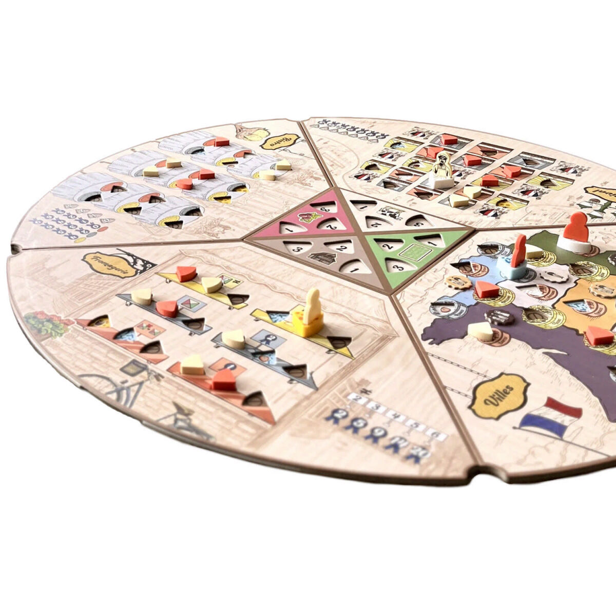 Ob im Bistro, beim Festival, im Käseladen oder beim Export in die verschiedenen Städte Frankreichs – sichert euch mit euren Käsesorten die meisten Prestige-Punkte und werdet zum angesehensten Käser Frankreichs! Da alle Spieler gleichzeitig an der Reihe sind, verdichtet Fromage das Spielgefühl eines hochstrategischen Eurogames auf nur 40 Minuten.
