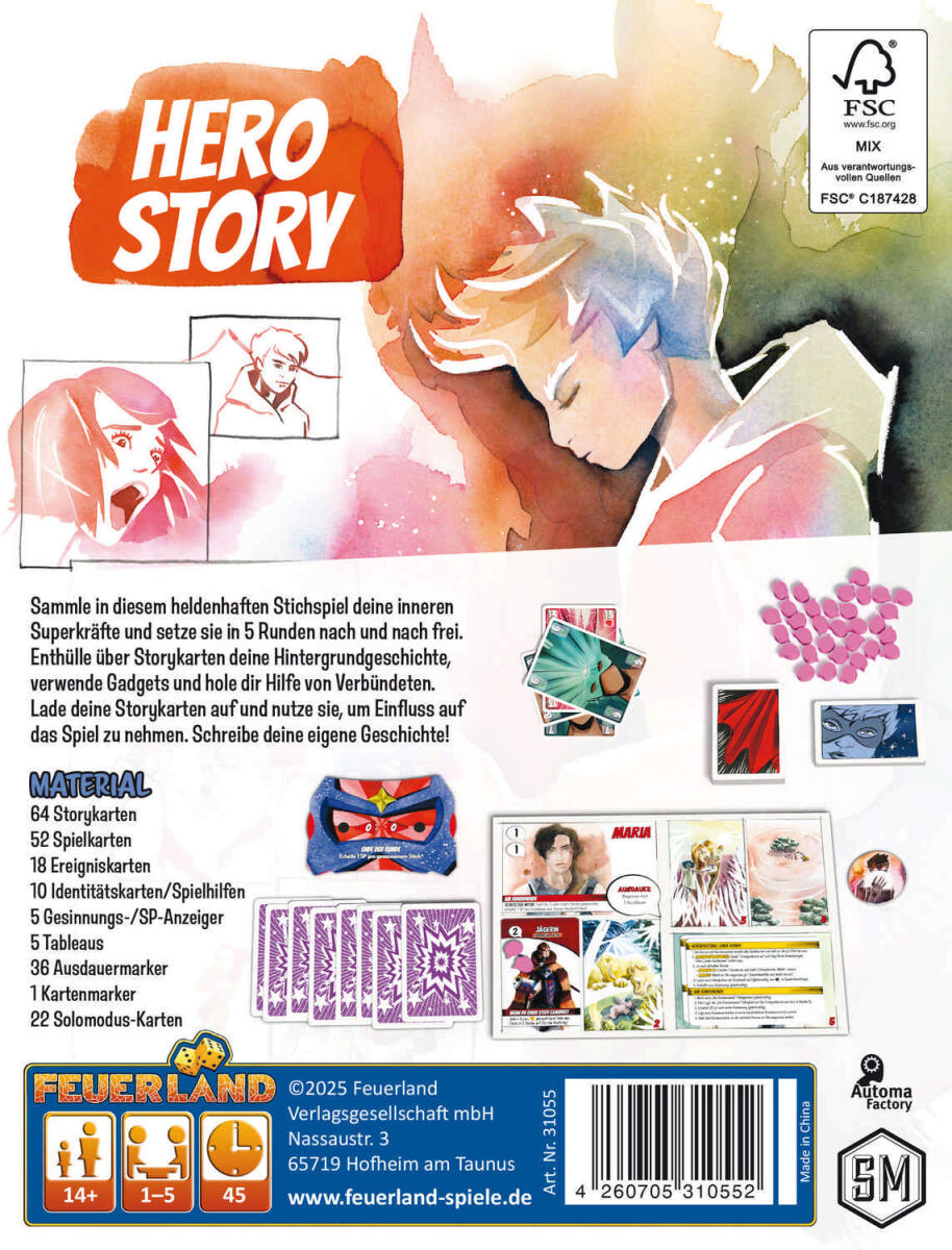 HERO STORY erzählt in fünf Runden den Weg deines Charakters vom Anfang seiner Reise bis zum voll entwickelten (Super-)Helden. Runde für Runde wächst dein Held, erhält neue Fähigkeiten und formt so eine individuelle Entwicklungsgeschichte, die sich direkt im Spielgeschehen widerspiegelt.