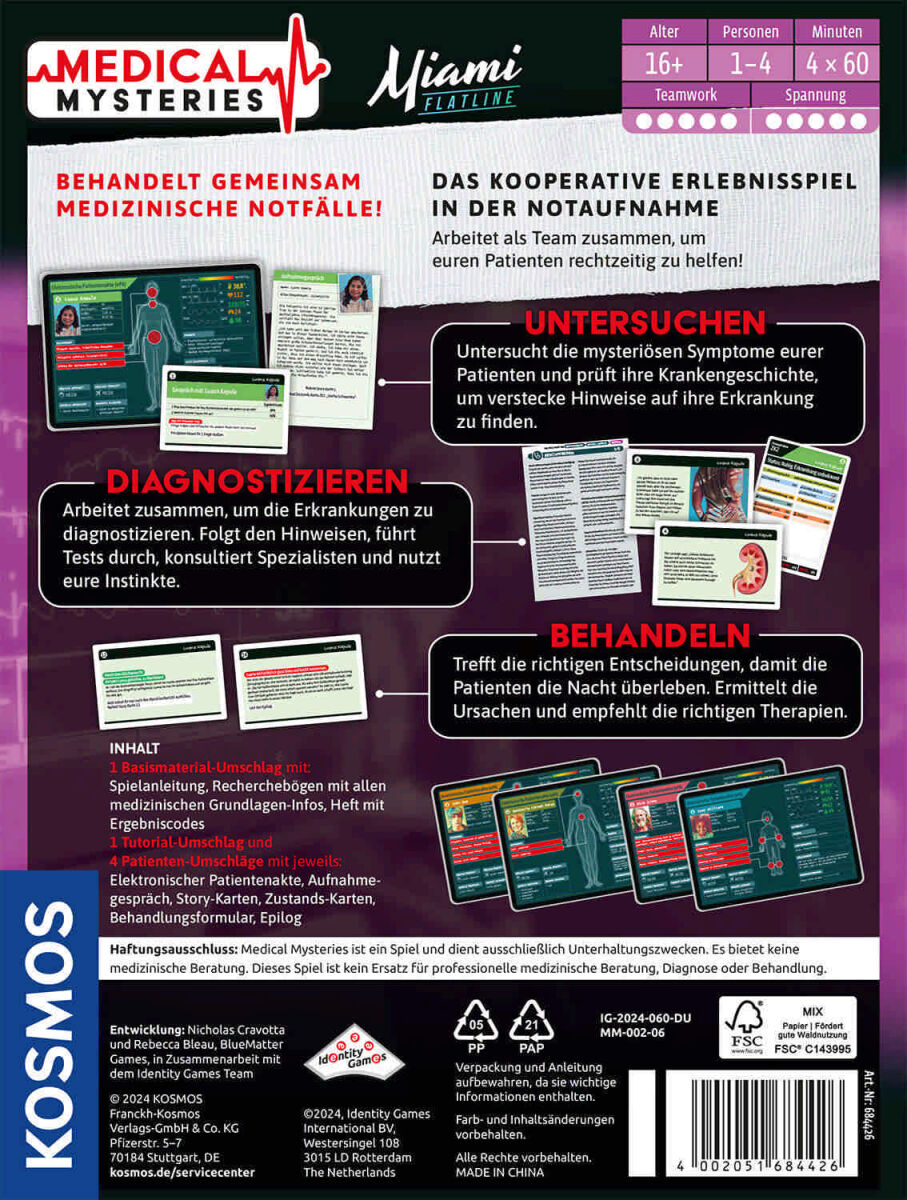 Übernimm die Verantwortung für vier Patienten in der Notaufnahme von Miami, jeder mit seinem eigenen einzigartigen Fall und steigendem Schwierigkeitsgrad. Egal, ob du alleine spielst oder mit Freunden, "Medical Mysteries" bietet dir ein spannendes und herausforderndes Spielerlebnis.