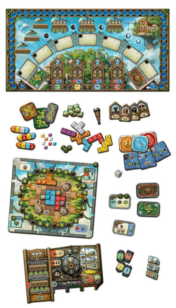 In diesem Worker-Placement-Spiel in der Solarpunk-Welt von Overgrown baut ihr in einer hoffnungsvollen Zukunft auf riesigen Bäumen Gärten in den Wolken und produziert grüne Energie.