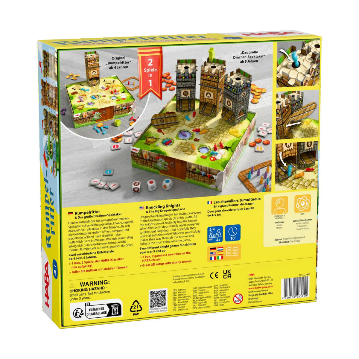 RUMPELRITTER & DAS GROSSE DRACHEN-SPEKTAKEL bietet doppelten Spielspaß mit einer Box voller Abenteuer: Der beliebte HABA-Klassiker kehrt in neuem Glanz zurück und bringt ein zusätzliches Spiel für Kinder ab 5 Jahren mit. Dank des liebevoll gestalteten 3D-Aufbaus mit stabilen Türmen entsteht eine lebendige Spielwelt, die kleine und große Entdecker sofort in ihren Bann zieht.