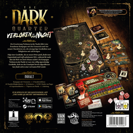 The Dark Quarter ist ein kooperatives Spiel indem ihr gemeinsam die Mysterien von Dark Orleans in einer geschichtsträchtigen Kampagne erkundet. Eure Entscheidungen werden nicht nur über den Verlauf der Geschichte bestimmen, sondern auch über das Schicksal der Charaktere. Seid euch sicher: In Dark Orleans wartet schlimmeres als der Tod!