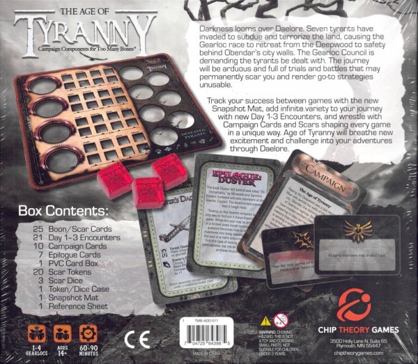 Age of Tyranny introduces brand new campaign mechanics to your existing Too Many Bones game. Using the Campaign Snapshot Mat, you'll track your progress from game to game. Take out all the Tyrants over consecutive sessions to truly free Daelore from their grip!