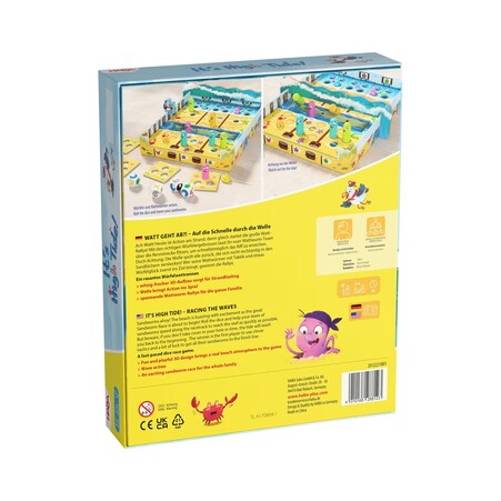 Nur mit den richtigen Würfelergebnissen können die eigenen Wattwurm-Teams über die Rennstrecke flitzen, um schnellstmöglich das Riff zu erreichen. Doch Achtung: Die Welle spült alle zurück, die sich nicht rechtzeitig in den Sandlöchern verstecken! Wer seine Wattwürmer mit Taktik und etwas Würfelglück zuerst ins Ziel bringt, gewinnt die Rallye.